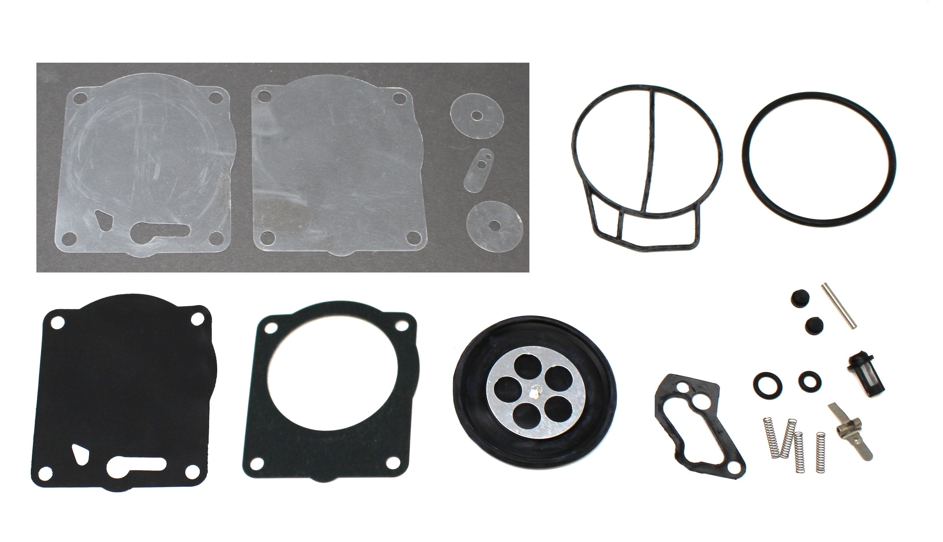 - Carb kit Includes all grommets, check valves, O-rings, filters, gaskets and diaphragms